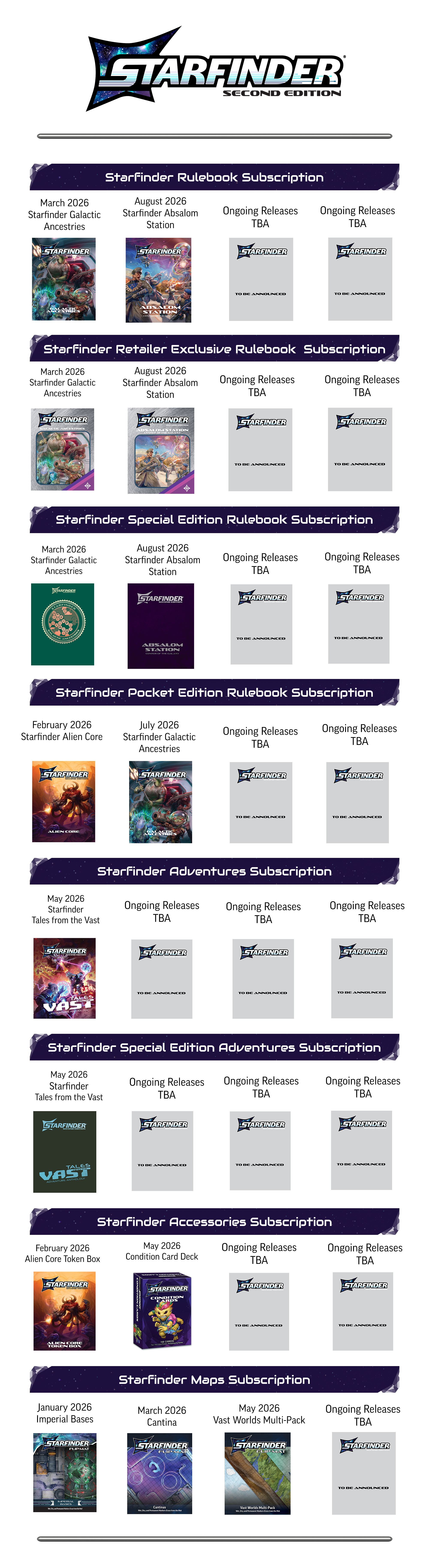 Starfinder Release Schedule